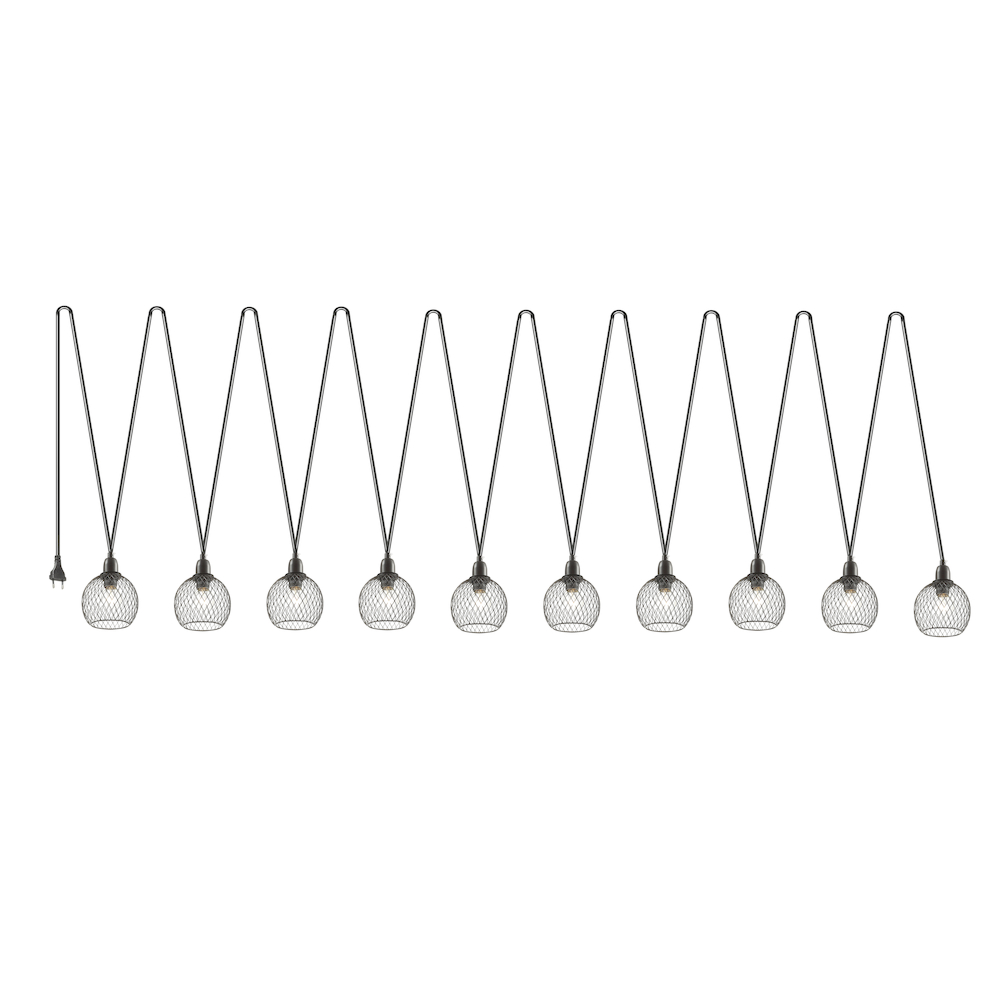 металл окрашен в черный цвет, длина провода между плафонами 60см, длина провода от последнего плафона до вилки 3м