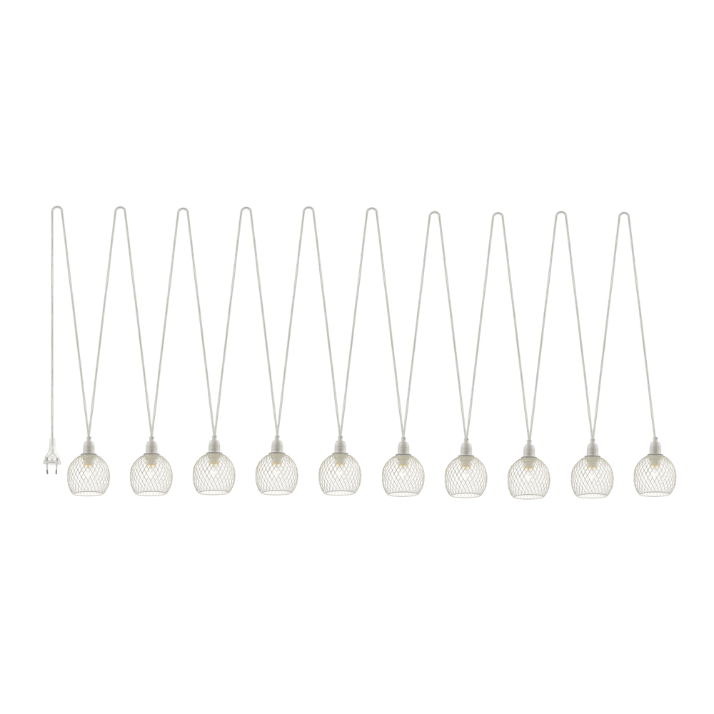 металл окрашен в белый цвет, длина провода между плафонами 60см, длина провода от последнего плафона до вилки 3м