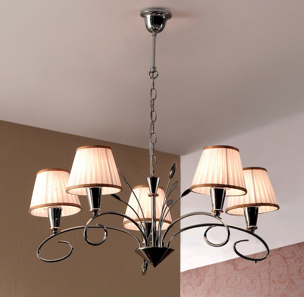 Диаметр 74см, Высота от 40см, Абажуры светло-кремовые с золотой лентой.