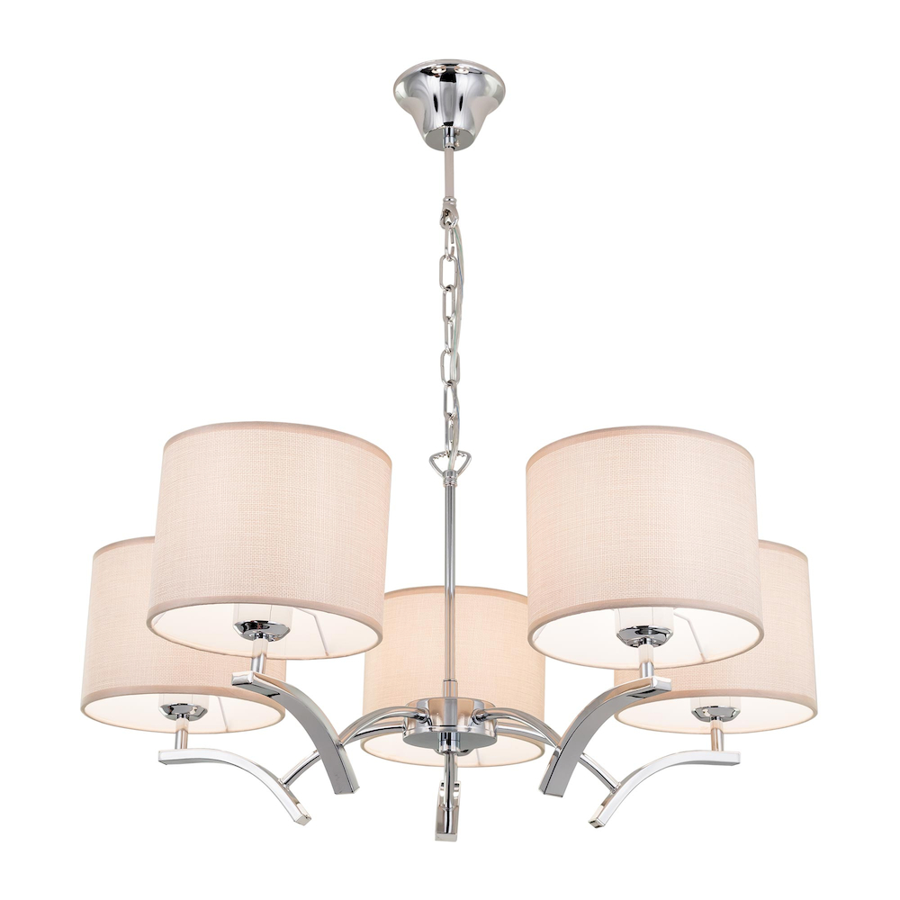 Диаметр 68см, Высота 120см, Стальная хромированная арматура с круглыми текстильными абажурами, Проводка коммутирована на 2-клавишный выключатель