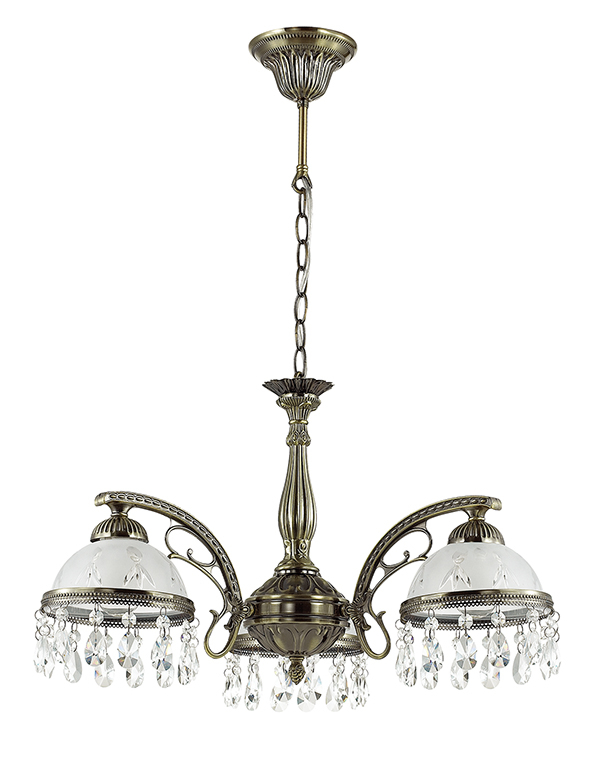 Люстра 2989/3 серии Avifa оформлена в классическом стиле. Люстра состоит из стеклянных плафонов с металлической окантовкой, украшенной хрусталем, и классической бронзовой арматуры, дополненной изящными металлическими элементами. Данная модель сразу привлекает к себе внимание благодаря сиянию хрусталя и классической форме. Цоколь E27. Мощность 3x60W. Нет ламп в комплекте.