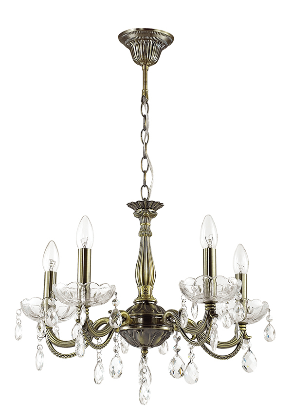 Люстра 2988/5 серии Candelia оформлена в классическом стиле. Люстра состоит из классической бронзовой арматуры, декорированной хрустальными блюдцами под лампочки-свечки и множеством хрустальных подвесок. Классический блеск и сияние данной модели станут украшением Вашего дома. Цоколь E14. Мощность 5x40W. Нет ламп в комплекте.