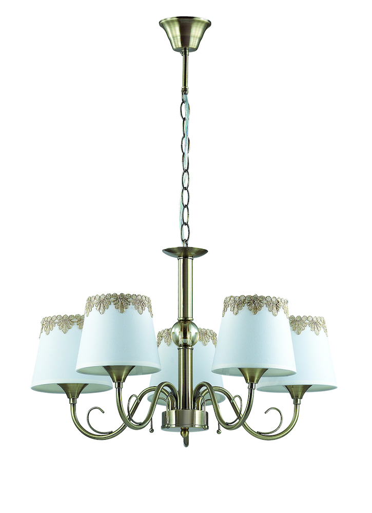 Люстра 2998/5 серии Placida оформлена в классическом стиле. Люстра состоит из тканевых абажуров, украшенных кружевной тесьмой, и бронзовой арматуры со стеклянным декоративным элементом на центральной штанге. Элегантная сдержанность - вот главное отличие данной модели. Цоколь Е14. Мощность 5x40W. Нет ламп в комплекте.