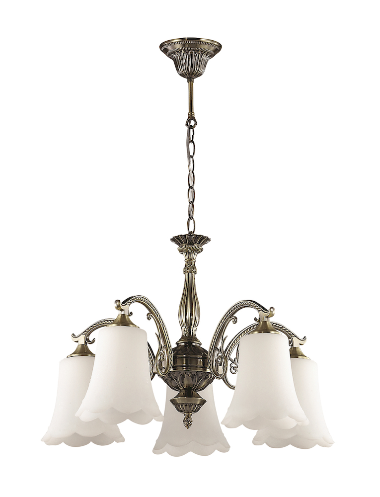 Люстра 2985/5 серии Sonette оформлена в классическом стиле. Люстра состоит из молочных стеклянных плафонов и классической бронзовой арматуры. Данная модель добавит традиционной классики в интерьер. Цоколь E27. Мощность 5x60W. Нет ламп в комплекте.