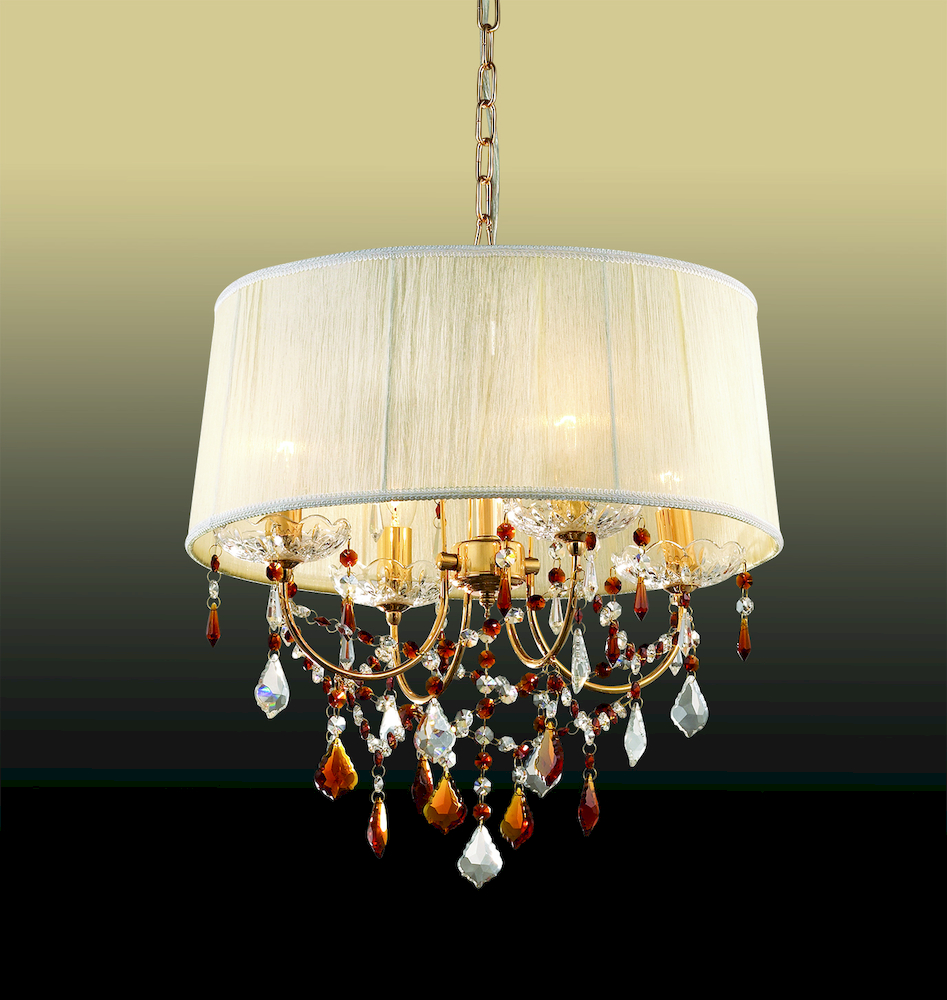 Люстра 2534/4 серии Adeli благородна и обворожительна. Люстра выполнена в золотом цвете, украшена восхитительными подвесками из мерцающего хрусталя, каждый подсвечник установлен на прозрачном хрустальном блюдце и все это покрыто полупрозрачным абажуром, выполненным из нежнейшей органзы. Цоколь E14. Мощность 4*40W.