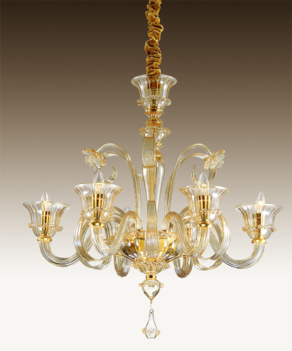Люстра 2794/6 серии Adiva выполнена в духе венецианских традиций. Основание декорировано деталями из окрашенного металла цвета золото. Люстра выполнена из изысканного выдувного стекла цвета "Шампань" и покрыта золотой патиной. Резные элементы на стекле, изящные цветы, деликатный цвет и форма светильника способны оставить неизгладимое впечатление. Цоколь E14. Мощность 6*40W. Нет ламп в комплекте.