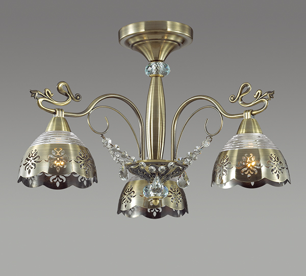 Люстра 3206/3C серии CAROLINA оформлена в классическом стиле. Люстра состоит из арматуры бронзового цвета, украшенной хрустальными подвесками и необыкновенных плафонов, выполненных из тисненого стекла и металла с ажурным рисунком. Эксклюзивная, оригинальная, нестандарная, данная модель не сможет оставить равнодушным даже искушенных ценителей. Цоколь E14. Мощность 3*40W. Нет ламп в комплекте.