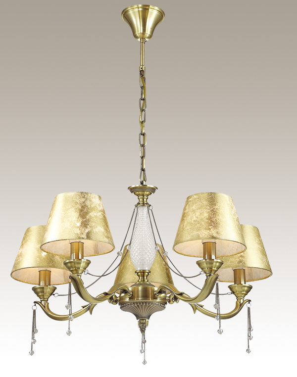 Люстра 3279/5 серии FEMINA оформлена в классическом стиле. Люстра состоит из тканевых абажуров с экстравагантным покрытием металлик и арматуры бронзового цвета, украшенной цепочками с бусинками. Данная модель обладает непревзойденной оригинальностью, сохраняя при этом классическую сдержанность. Цоколь E14. Мощность 5*40W. Нет ламп в комплекте.