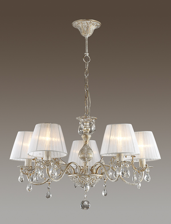 Люстра 3229/5 серии MAGALI оформлена в классическом стиле. Люстра состоит из воздушных светлых абажуров из органзы и восхитительной арматуры белого цвета с глянцевой золотой патиной, декорированной множеством хрустальных подвесок. Данная модель подарит Вам удивительные моменты нежности и легкости. Цоколь E14. Мощность 5*40W. Нет ламп в комплекте.