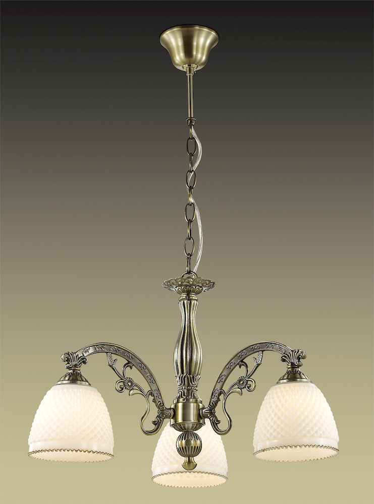Люстра 2868/3 серии Masala выполнена в классическом стиле. Люстра состоит из белого стекла и арматуры цвета бронза изящно закрученной в канделябр. Сдержанный дизайн и простота линий гармонично сочитаются в интерьере. Цоколь Е27. Мощность 3х40W. Тип крепления "крюк" Нет ламп в комплекте.