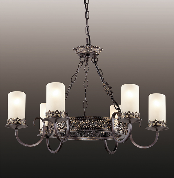 Классическая люстра 2690/6 в викторианском стиле идеально впишется как в загородные дома в стиле Шале, так и в современные интерьеры. Роскошно обрамленное основание люстры, ажурные цепи и подсвечники, в сочетании с белыми матовыми плафонами в виде оплавившихся свечей, станут настоящим украшением помещения. Цоколь E14. Мощность 6*60W.