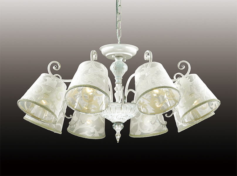 Изысканная люстра 2680/8 серии Urika выполнена в белом цвете с золотой патиной. Необычайно красивые резные элементы на основании дополнены стеклянным шаром с изящными гранями. А белоснежные абажуры украшают цветочные узоры, придающие им легкость и полупрозрачность. Цоколь E14. Мощность 8*60W.