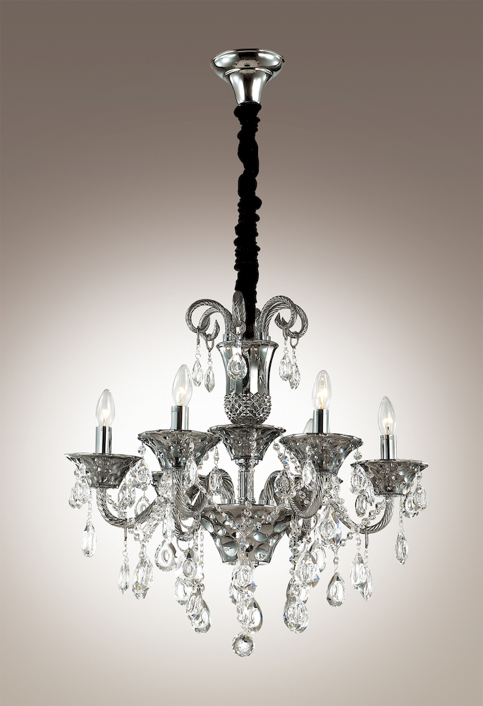 Люстра 2940/6 серии Valensa оформлена в классическом стиле. Вензеля из темно-серого стекла и множество хрустальных подвесок придают данной моделе роскошь исполнения, цвет покрытия базы хром. Рекомендуем исползовать лампочки типа "свеча на ветру". Цоколь Е14. Мощность 6x40W. Тип крепления "крюк". Нет ламп в комплекте.