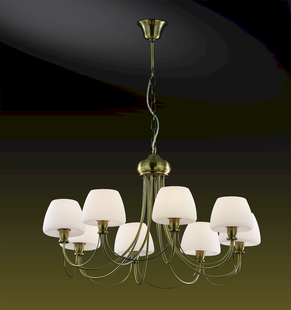 Великолепная люстра 2057/8 серии Vesto выполнена в классическом бронзовом цвете. Изящные изогнутые элементы и воздушные матовые плафоны придают ей особый утонченный шик. Цоколь E14. Мощность 8*60W.