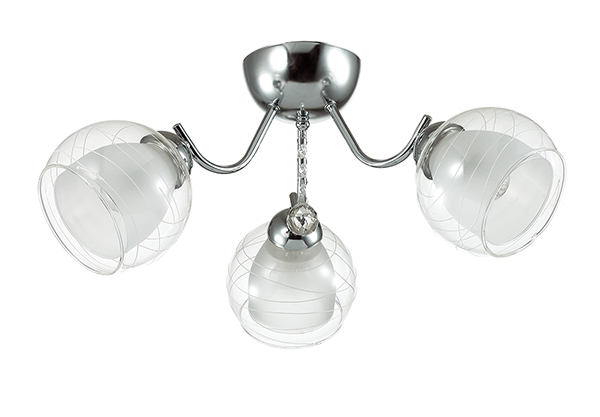 Люстра потолочная 3071/3C серии Brinna оформлена в современном стиле. Люстра состоит из двойных стеклянных плафонов, нижняя часть которых матовая, а верхняя - прозрачная с легким рисунком, и базовой арматуры хромового цвета, украшенной подвеской из хрусталя. Данная модель замечательно впишется в интерьер кухни либо небольшой комнаты. Цоколь E14. Мощность 3x40W. Нет ламп в комплекте.