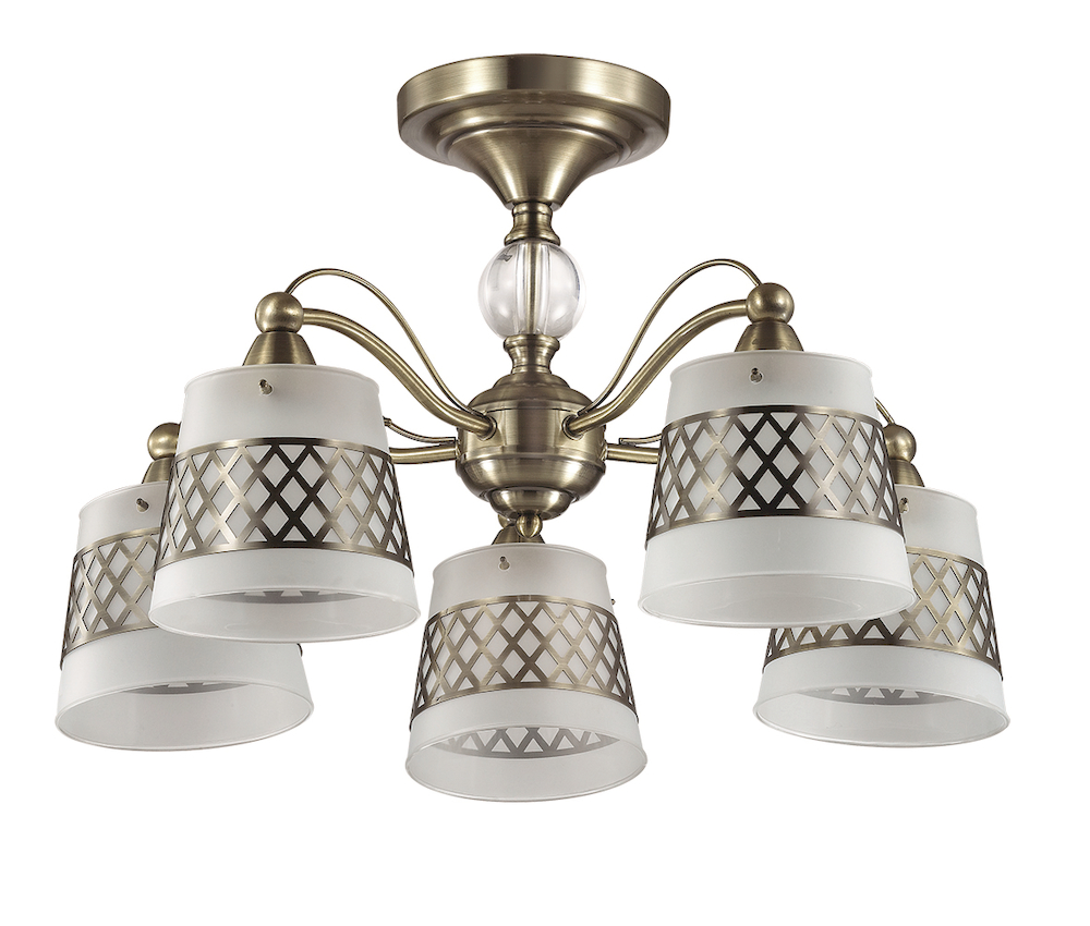 Люстра 3050/5С серии Castella оформлена в классическом стиле. Люстра потолочная состоит из плафонов молочного цвета с металлическим декором, а также арматуры цвета бронзы, украшенной стеклянным шаром. Модель выполнена в старинном стиле, и внесет нотку средневековья в интерьер. Цоколь E14. Мощность 5х40W. Нет ламп в комплекте.