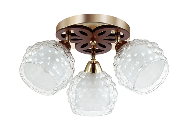 Люстра потолочная 3057/3C серии Federro оформлена в современном стиле. Светильник состоит из двойного плафона, нижняя часть которого выполнена из матового стекла, а верхняя - из актуального объемного стекла, и арматуры золотого цвета. За счет необычности плафонов данная модель будет очень оригинально и стильно смотреться у Вас дома. Цоколь E14. Мощность 3x60W. Нет ламп в комплекте.