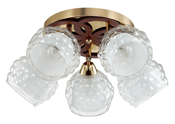 Люстра потолочная 3057/5C серии Federro оформлена в современном стиле. Люстра состоит из двойных плафонов, нижняя часть которых выполнена из матового стекла, а верхняя - из актуального объемного стекла, и арматуры золотого цвета, украшенной ажурными декоративными элементами под дерево. За счет необычности плафонов данная модель будет очень оригинально и стильно смотреться у Вас дома. Цоколь E14. Мощность 5x60W. Нет ламп в комплекте.