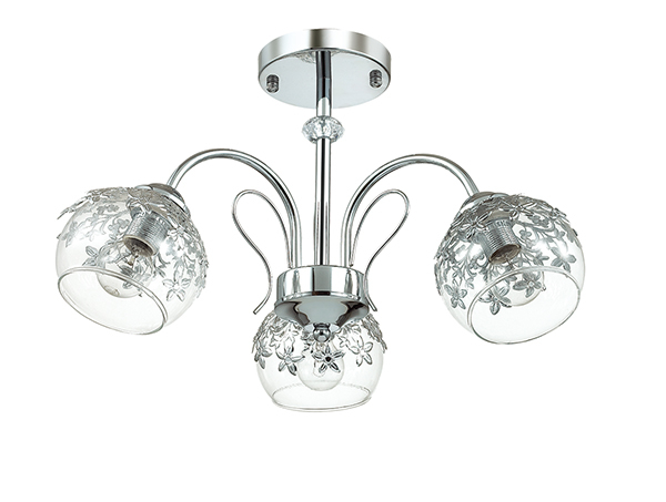 Люстра потолочная 3066/3C серии Felissa оформлена в современном стиле. Люстра состоит из стеклянных прозрачных плафонов с металлическим ажурным декором и хромовой арматуры, украшенной хрустальным элементом. Данная модель уже несколько сезонов не теряет своей популярности. Цоколь E14. Мощность 3x40W. Нет ламп в комплекте.