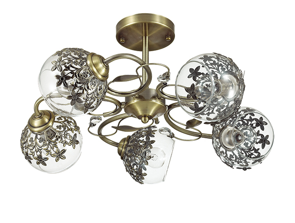 Люстра потолочная 3067/5C серии Felissa оформлена в современном стиле. Люстра состоит из стеклянных прозрачных плафонов с металлическим ажурным декором в виде лепестков и арматуры бронзового цвета, украшенной хрусталем. Данная модель очень стильно смотрится за счет необычного декора на плафонах. Цоколь E14. Мощность 5x40W. Нет ламп в комплекте.