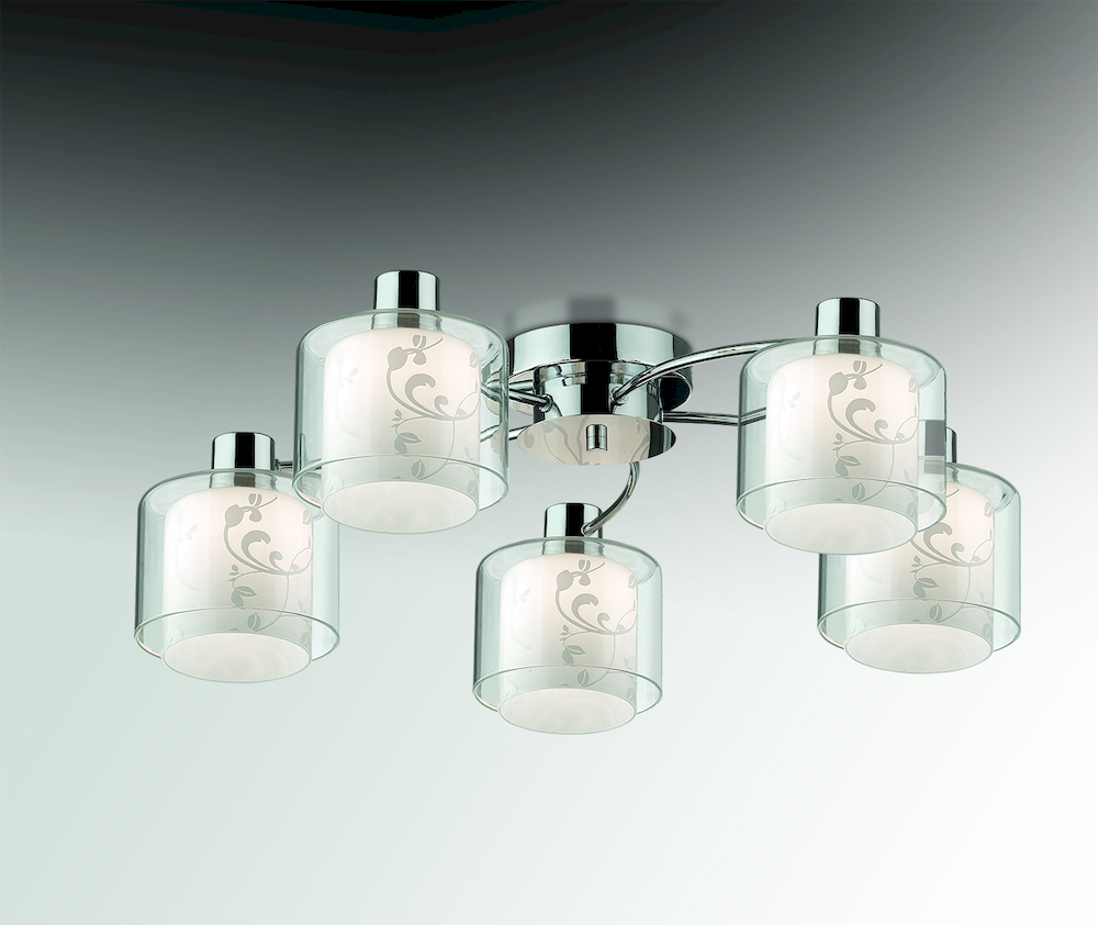 Люстра 2210/5C серии Isko выполнена в стиле минимализм и состоит из металлической арматуры цвета хром и стеклянных плафонов. Тем не менее, необычные двойные плафоны с прозрачным стеклом снаружи и белым матовым плафоном с нанесением нежного орнамента внутри, придают люстре неповторимый шарм. Цоколь G9. Мощность 5*40W. Нет ламп в комплекте.