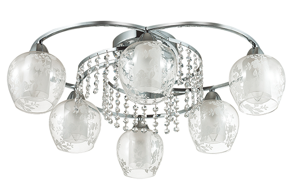 Люстра потолочная 3065/6C серии Kristalin оформлена в современном стиле. Люстра состоит из плафонов, изготовленных из двойного стекла, нижняя часть которого матовая, а верхняя - прозрачная с вензельным рисунком, и арматуры хромового цвета, обильно украшенной подвесками из хрусталя. С данной моделью свет в Вашей квартире заиграет новыми красками. Цоколь E14. Мощность 6x60W. Нет ламп в комплекте.