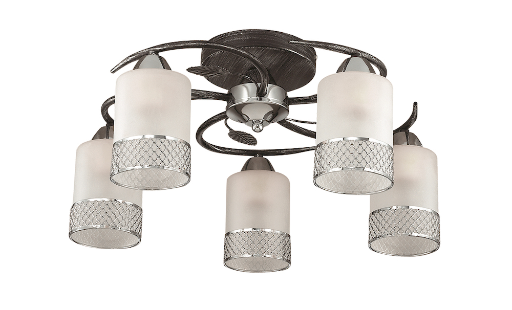 Люстра потолочная 3022/5C серии Mirabella оформлена в современном стиле. Люстра состоит из матовых стеклянных плафонов, с хромовой металлической окантовкой и арматуры необычного черного цвета, украшенного серебряной патиной. Данная модель - не что иное, как тонкое соприкосновение современного и классического. Цоколь E27. Мощность 5x60W. Нет ламп в комплекте.