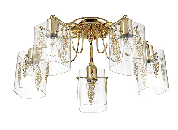 Люстра потолочная 3069/5C серии Ora оформлена в классическом стиле. Люстра состоит из прозрачных стеклянных плафонов квадратной формы, украшенных ажурным металлическим рисунком и арматуры золотого цвета. За счет сочетания цвета каркаса с рисунком на плафоне модель выглядит очень современно и стильно, сохраняя при этом классический дизайн. Цоколь E27. Мощность 5x60W. Нет ламп в комплекте.