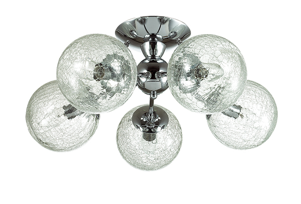 Люстра потолочная 3060/5C серии Palla оформлена в современном стиле. Люстра состоит из прозрачных плафонов с эффектом потрескавшегося стекла в форме шара и хромовой арматуры. Данная модель за счет формы плафонов визуально увеличит объем Вашей комнаты. Цоколь E14. Мощность 5x40W. Нет ламп в комплекте.