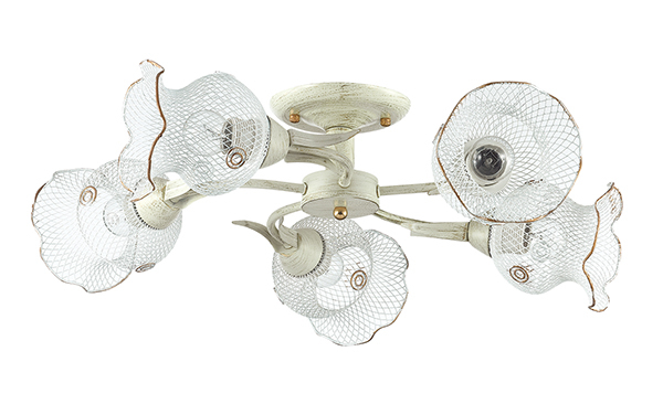 Люстра потолочная 3108/5C серии Rozetta оформлена в классическом стиле. Люстра состоит из металлических сетчатых абажуров с декоративными элементами и арматуры белого с золотой патиной цвета. Базовая классическая модель обязательно украсит Ваш интерьер своей скромной красотой. Цоколь E27. Мощность 5x60W. Нет ламп в комплекте.