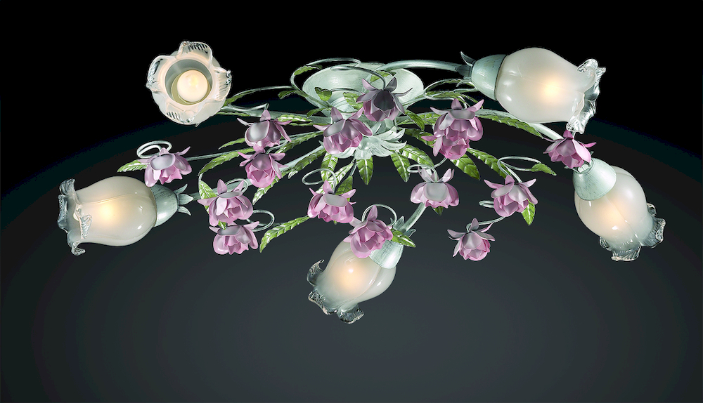 Люстра 2252/5C серии Ameli украшена изящными нежными розами и зелеными лепестками, а плафоны, выполненные из белого матового стекла, играют роль нераспустившихся цветочных бутонов. Цоколь E14. Мощность 5*60W. Нет ламп в комплекте.