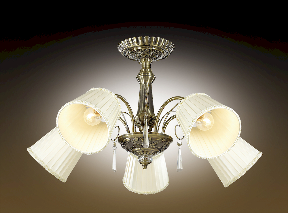 Люстра 2925/5С серии Atesa выполнена в бронзовом цвете. Светлый тканевый абажур потолочной люстры украшен окантовкой из тесмы, декоративные элементы выполнены в виде хрустальных подвесок. Цоколь Е14. Мощность 5х40W. Нет ламп в комплекте.