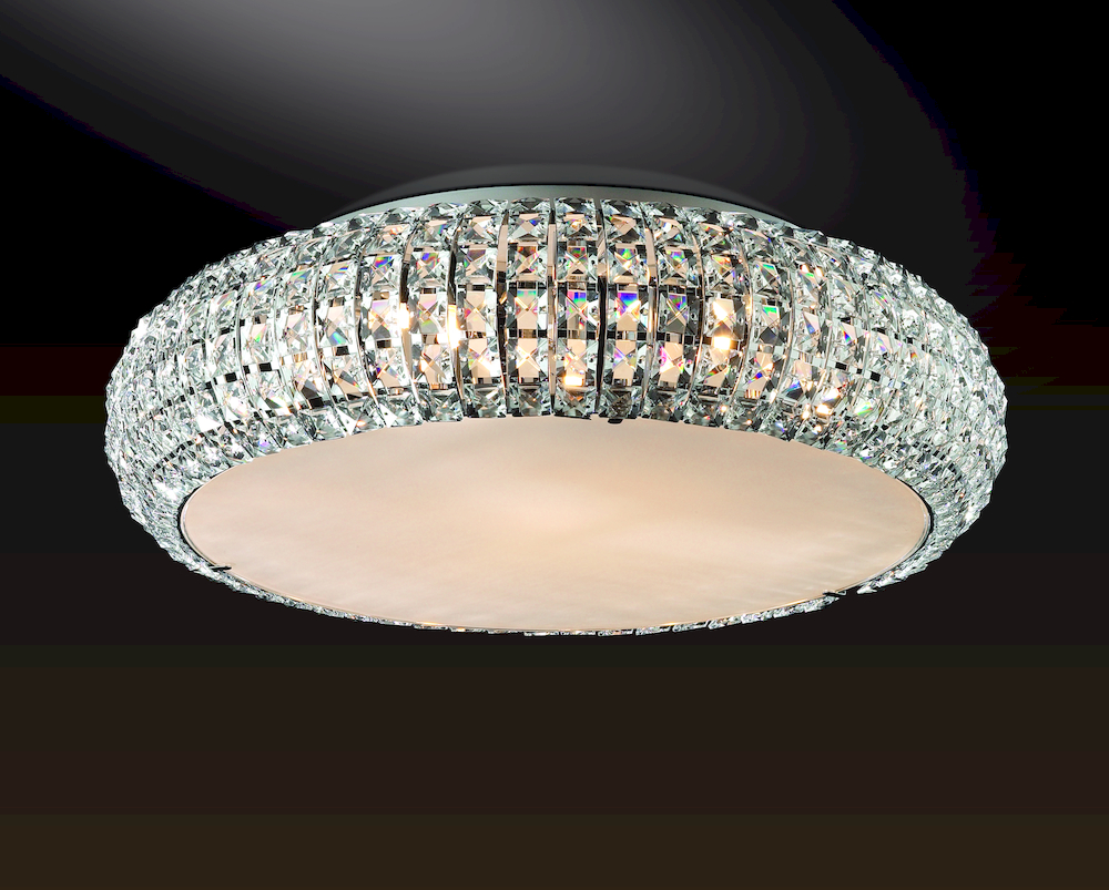 Яркая и современная люстра 1606/9 серии Crista украшена плафоном из высококачественного хрусталя квадратной формы, а также белым матовым стеклом, мягко рассеивающим свет. Такая люстра впишется в интерьер любого стиля - модерн, классика, минимализм. Цоколь G9. Мощность 9*40W. Нет ламп в комлпекте.