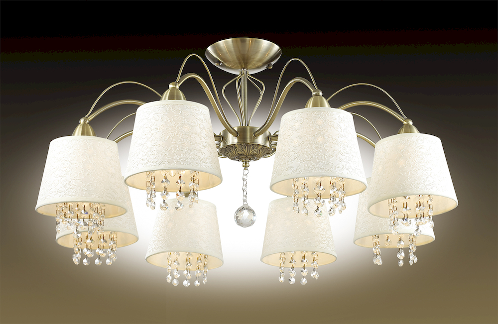 Люстра 2915/8С серии Fonte выполнена в бронзовом цвете. Светлый тканевый абажур потолочной люстры украшен ажурным рисунком, декоративные элементы выполнены в виде хрустальных подвесок. Цоколь Е14. Мощность 8х40W. Нет ламп в комплекте.