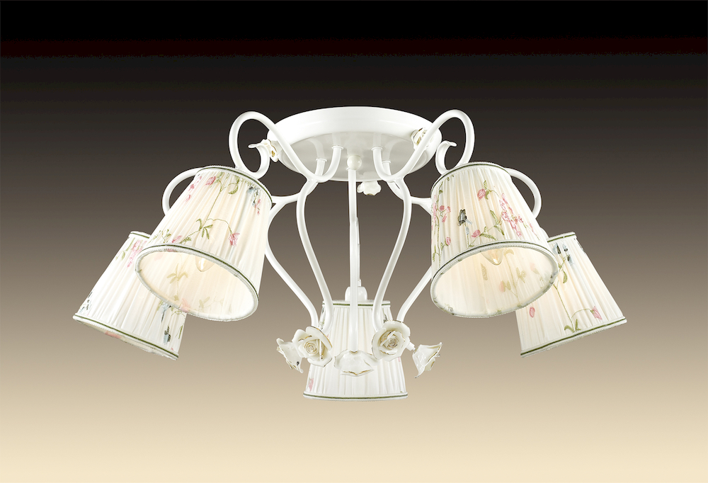 Люстра 2886/5С серии Montala выполнена в классическом стиле. Потолочная люстра имеет белоснежный цвет базы, нежные декоративные керамические розы в сочитании с неповторимо нежным рисунком на тканевом абажуре. Цоколь Е14. Мощность 5х60W. Нет ламп в комплекте.