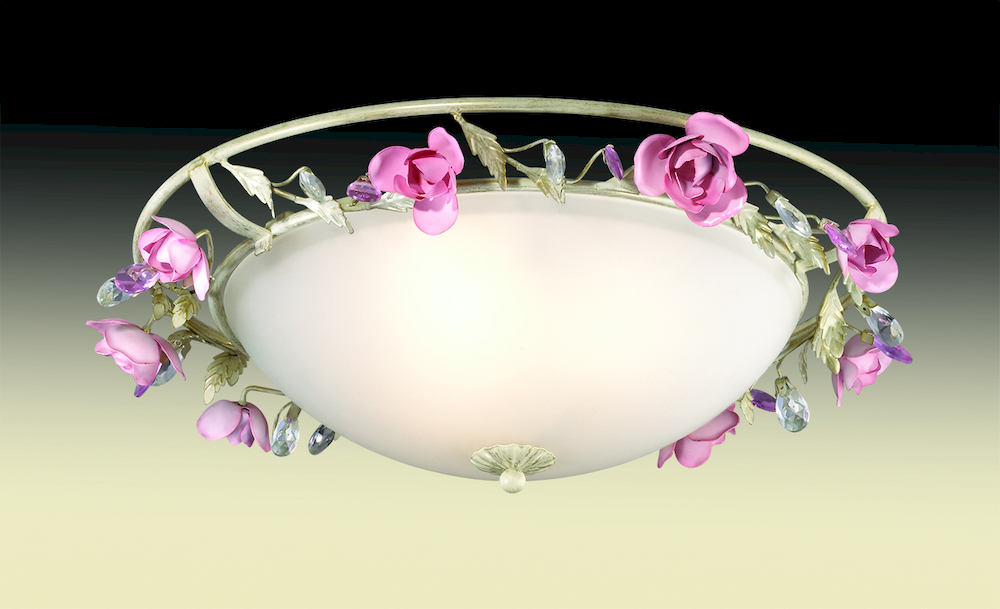 Люстра 2585/3 серии Oxonia украшена извивающимися тонкими веточками, декорированными изящными розами бледно-розового цвета, утонченными лепестками и прозрачным хрусталем. Белый плафон "алебастр" делает эту люстру легкой, прозрачной и невесомой. Цоколь E14. Мощность 3*40W. Нет ламп в комплекте.