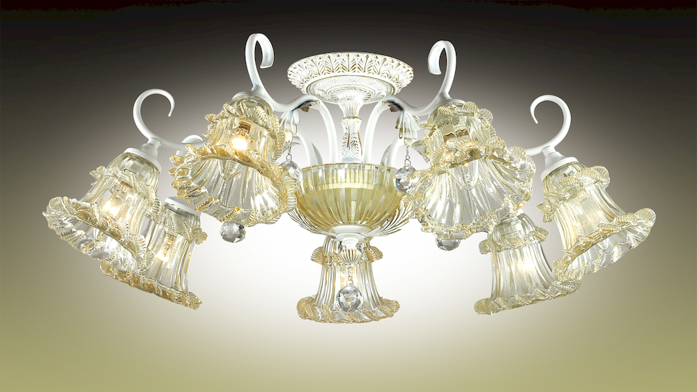 Люстра 2894/7С серии Salmora исполнена в белом цвете с элементами золотой патины. Плафоны люстры из стекла, декорирована хрустальными подвесками. Цоколь Е14. Мощность 7х60W. Нет ламп в комплекте.