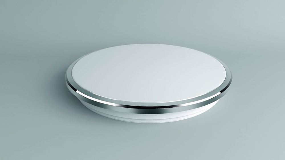 Диаметр 38 см, Высота 6.5 см, Светодиодный светильник, Уровень мощности 100-50-10% управляется выключателем, Влагозащита IP54