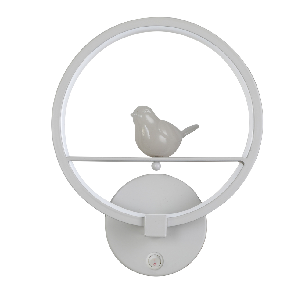белый каркас с акриловой фигуркой птички, светильник с выключателем