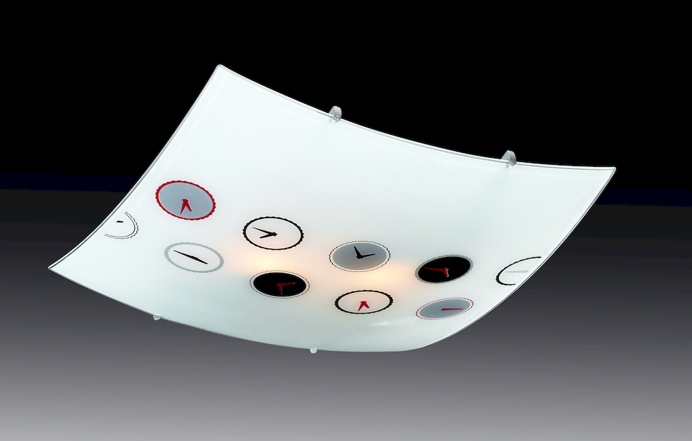 держатель плафона - никель, матовый белый плафон с красно-серо-чёрным графическим рисунком
