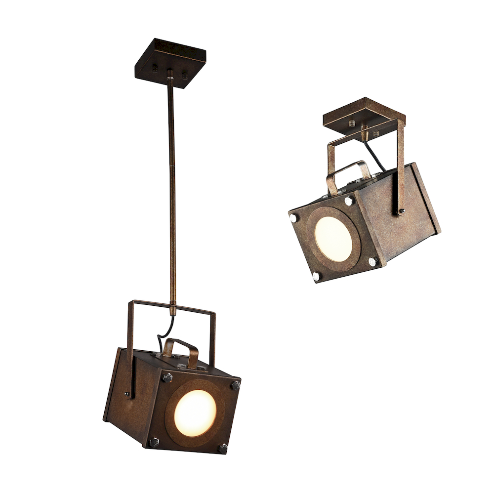 металл окрашен в коричневый цвет с коррозией, можно использовать как потолочный, если убрать трубку