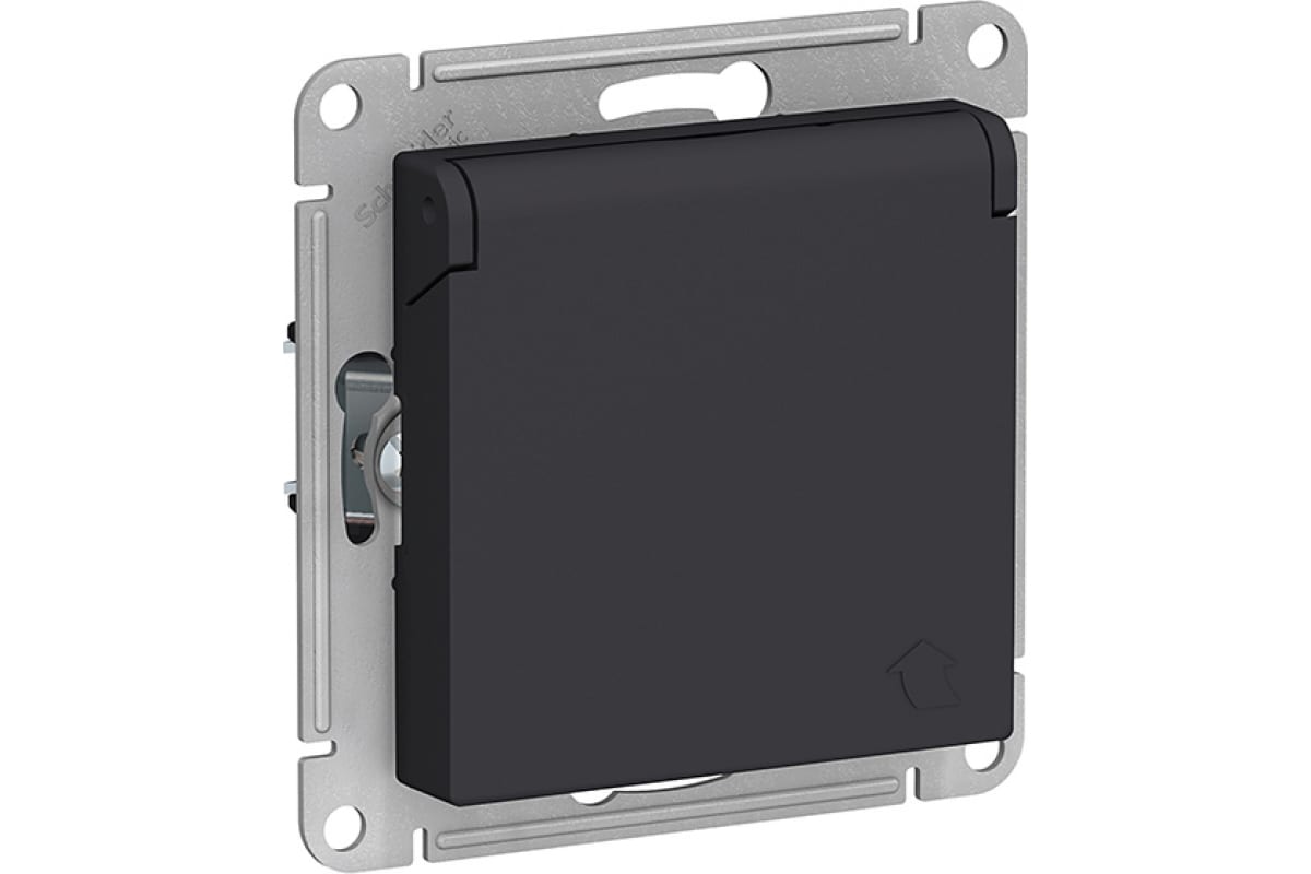 Розетка с заземлением с крышкой карбон Systeme Electric AtlasDesign ATN001046