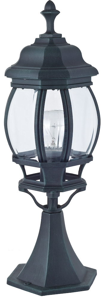 металл черный с зеленой патиной (эффект окиси бронзы), плафон из прозрачного стекла