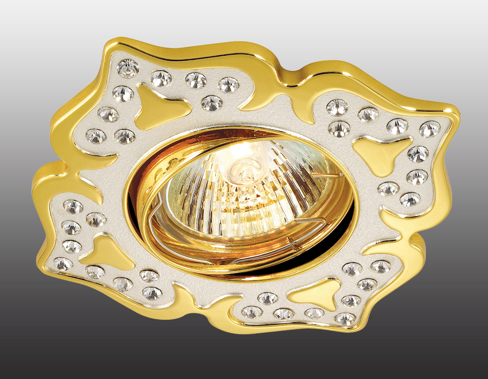 Светильник сделан из алюминиевого литья. Это сплав, основными достоинствами которого являются — устойчивость к практически всем видам негативного воздействия окружающей среды, коррозии, небольшой вес, по сравнению с другими видами металла и экологическая безопасность материала. Декоративные стразы произведены из хрусталя. Он обладает высоким показателем плотности, прозрачности и блеска. Благодаря содержанию свинца (не менее 30%) и определённому подбору углов, образуемых гранями, изделия из