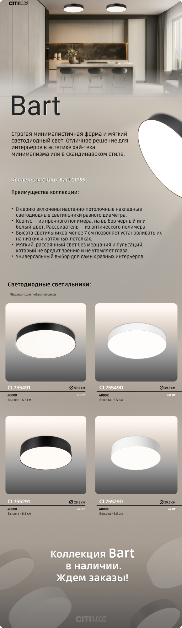 Citilux Bart — строгость и простота формы